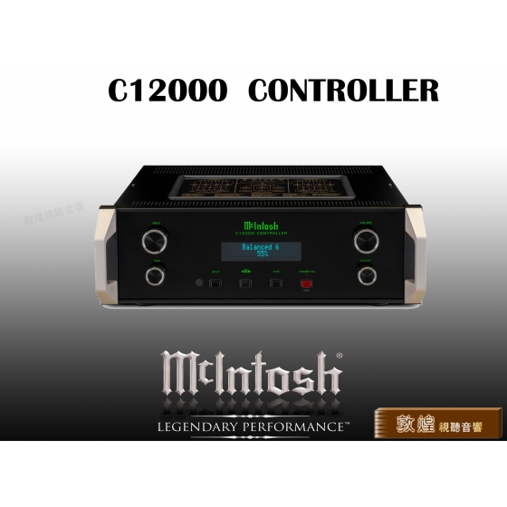 C12000是美國High End大廠McIntosh最新發表的旗艦前級,其採用成本相對高昂的兩件式及全平衡線設計,主要線路與電源部份完全獨立隔離,以追求最純淨的聲音再生可能。C12000旗艦前級分為控制模組(Controller Module)與前級模組(Preamplifier Module)兩個部份,控制模組內包括了電源控制、資料接口及與對外的控制連結,模組內有兩個完全獨立的電源分別供左右聲道使用,還設有兩個微處理器為控制系統提供了強而有力的運作核心。