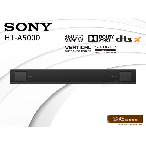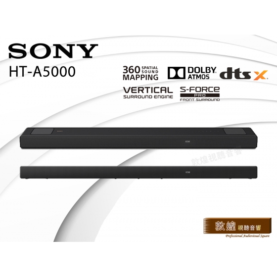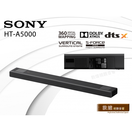 ●HT-A5000 具備 5.1.2 聲道:兩個向上發聲揚聲器可傳遞頭頂上方的音效;兩個波束高音揚聲器和三個前置揚聲器支援更寬廣的環繞音效,還有內建低音揚聲器可帶來深沉低音。Vertical Surround Engine 和 S-Force PRO 前置環繞音場可營造來自四面八方的虛擬環繞音效,讓您盡情享受 Dolby Atmos® 和 DTS:X® 帶來的刺激震撼