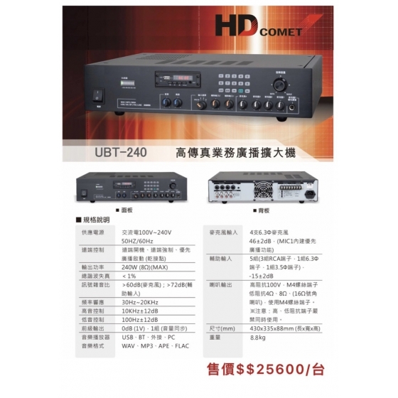 HD COMET UBT-240 高壓型擴大機240W