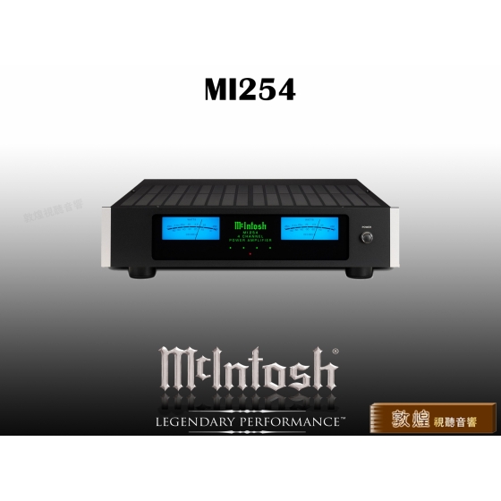 MI254的前面板安裝了2組McIntosh招牌藍色表頭,分別顯示1+2聲道與3+4聲道的總功率輸出,還有多色LED燈指示每個聲道的工作狀態,背板上有平衡與非平衡兩種輸入端子。
