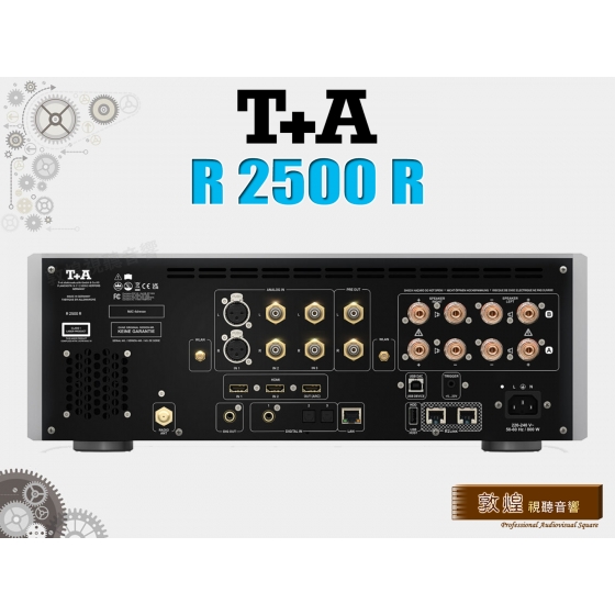 綜擴以外的功能就豐富了。R 2500 R 內建 DAC,而且這個 DAC 還是他們家招牌技術「雙差動四重解碼」(Double-Differential-Quadruple-Converter),讓 PCM 和 DSD 訊號各走各的、各解各的。在 PCM 方面,它支援最高 32bit/ 768kHz,DSD 則可到 DSD512,規格不落人後。數位輸入端子有一組同軸、兩組光纖,加上 USB。USB 還是 type A 和 type B 都有,讓用家可以接電腦或串流轉盤,也可讀取硬碟資料。