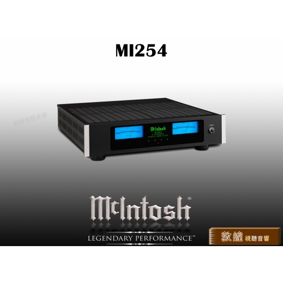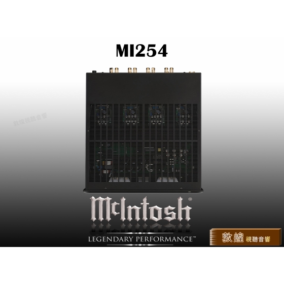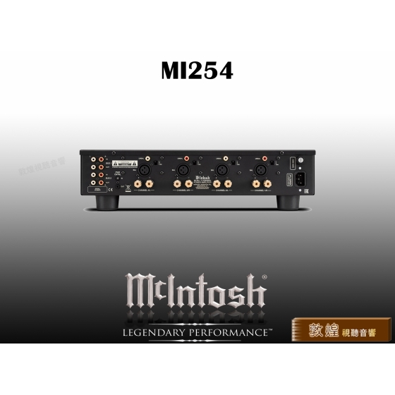 MI254的前面板安裝了2組McIntosh招牌藍色表頭,分別顯示1+2聲道與3+4聲道的總功率輸出,還有多色LED燈指示每個聲道的工作狀態,背板上有平衡與非平衡兩種輸入端子。
