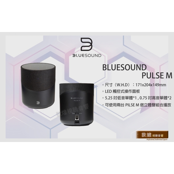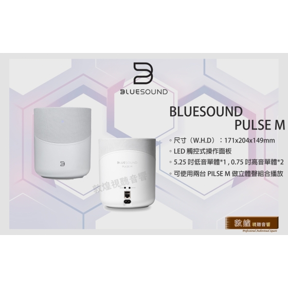 和FS230 落地支架可靈活放置。PULSE M 採用緞面黑色或白色飾面,以匹配其他 Bluesound 播放器。