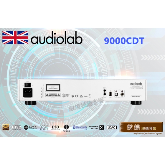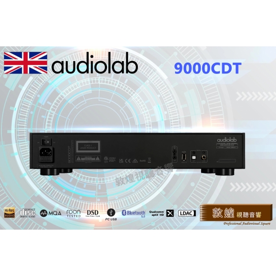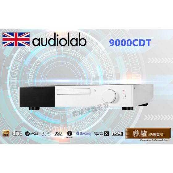 9000CDT是純轉盤(數位輸出無類比)的設計,使用業界知名的TEAC 5020A-AT CD機構和電子資料暫存器,以實現精准無誤的CD播放。預讀取數位暫存器可以減少光碟讀取錯誤並降低時基誤差,可幫助9000CDT播放因刮痕損壞的無法順利讀取的CD片,從中拾取最完整資訊。9000CDT採傳統抽屜式承盤、堅固的鋁合金底座和底盤可以消除高轉速CD機構產生的振動。此外,轉盤安裝在帶有電磁遮罩的外殼中,並配有獨立電源,有助於實現最佳數位信號拾取,通過減少諧振進一步提高信號穩定的性能。全機電源供應,採用知名英國電壓器廠牌Noratel(箭豬) 為Audiolab特別客製化規格的變壓器,電壓9.5V/電流3A,提供穩定可靠與大電流的強勁輸出。目前業界的CD播放機絕大多數仍是單色的顯示幕,9000CDT螢幕採用彩色4.3吋IPS LCD,將帶給消費者新鮮的體驗。操作使用大型飛梭旋鈕,播放、暫停、跳曲等的操作非常靈敏,手感一流。另外,用家可以通過背後的USB口來播放USB儲存設備的音訊檔,支援WAV,MP3,AAC,WMA等檔案格式。