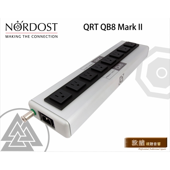 QB8 MK2外觀上與前一代的QB8很像,但是內部設計不同,原廠表示,聲音表現更進步。QB8 MK2一共有8組電源輸出,可最多同時供8部器材使用。內部是Nordost工程師精心設計的星狀接地,可以提供更低噪訊的乾淨電源。QB8 MK2並不是一般的濾波排插,其內部並沒有任何坊間可見濾波排插所憑靠的RC濾波線路。Nordost要的是完整的動態,傳統的濾波線路會限縮電流供應,對於音樂動態再生有負面影響。Nordost運用了Q.R.T.的消噪技術,能夠消除電源雜訊卻不減損動態。